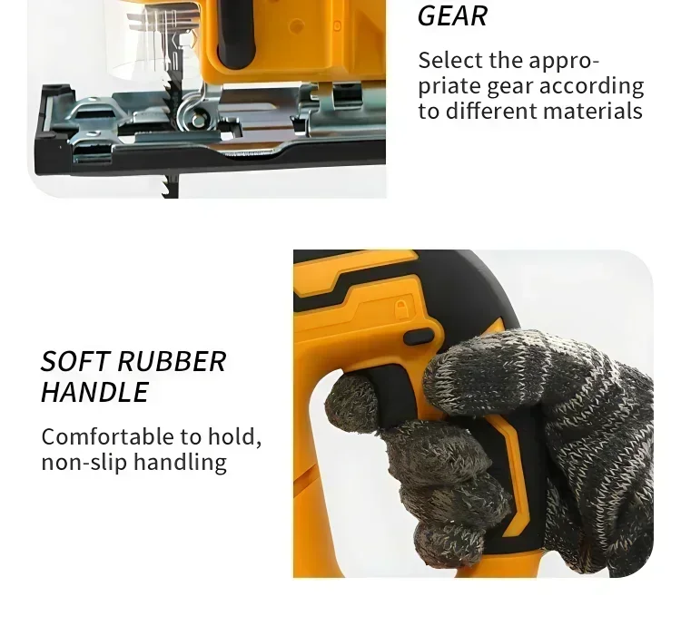 The Dewalt Jig Saw is not just about power; it's also about comfort and control. The soft rubber handle enhances hand feeling and reduces vibration, making prolonged use less fatiguing. The ergonomic design ensures that the tool fits comfortably in your hand, providing better control during intricate cuts. The lock button is a convenient feature that allows you to lock the switch, preventing accidental activation while in storage or transport.