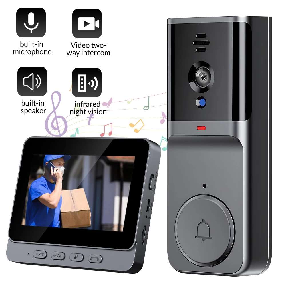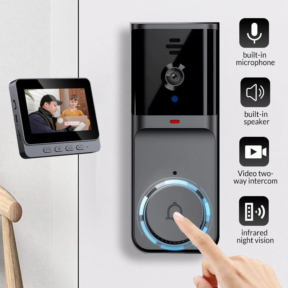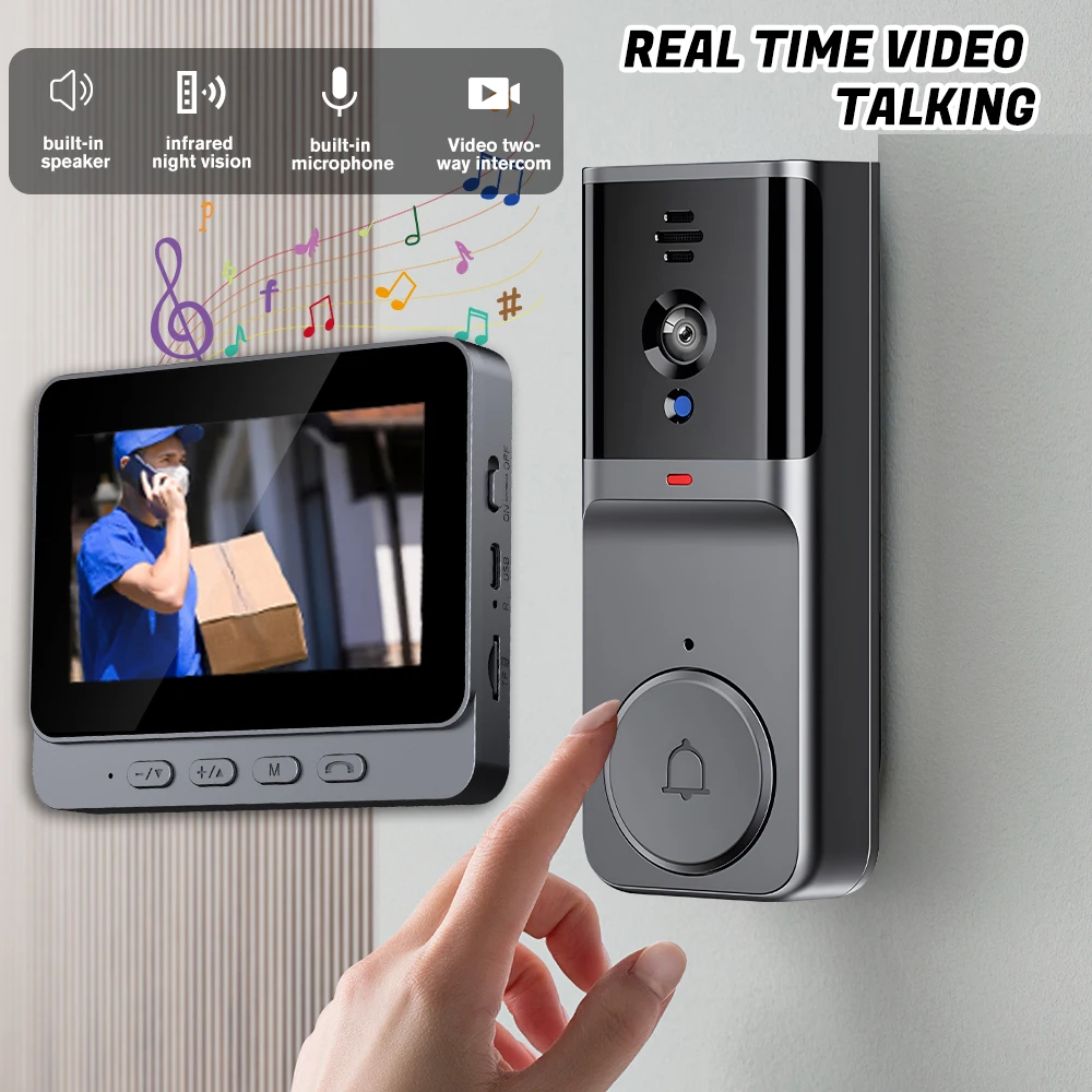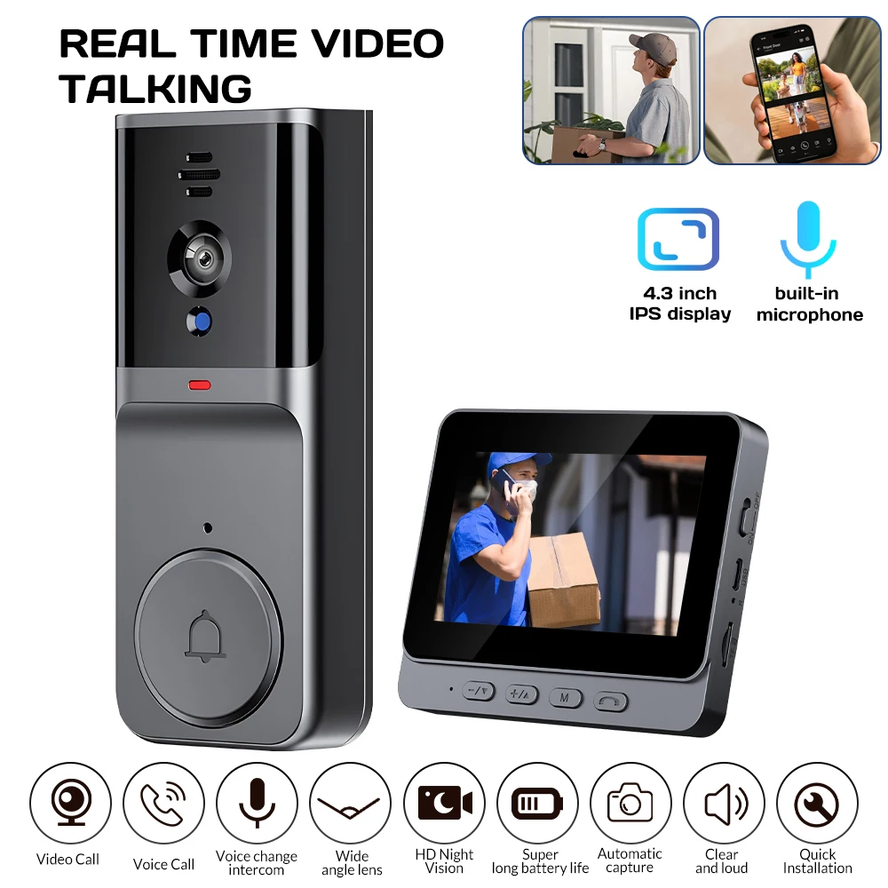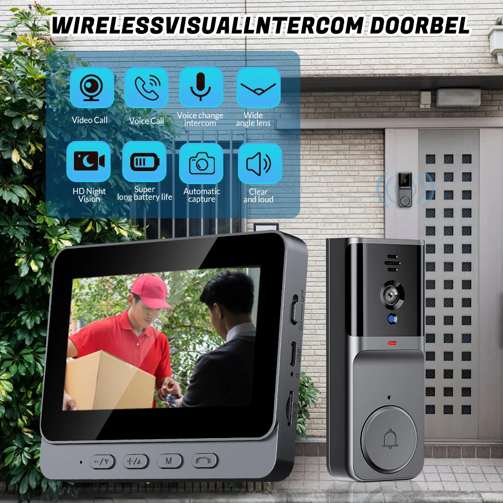 Wireless Video Intercom Doorbell HD Night Vision 4.3inch Screen Waterproof Visual Doorbell Camera Smart Video By Bell Security
