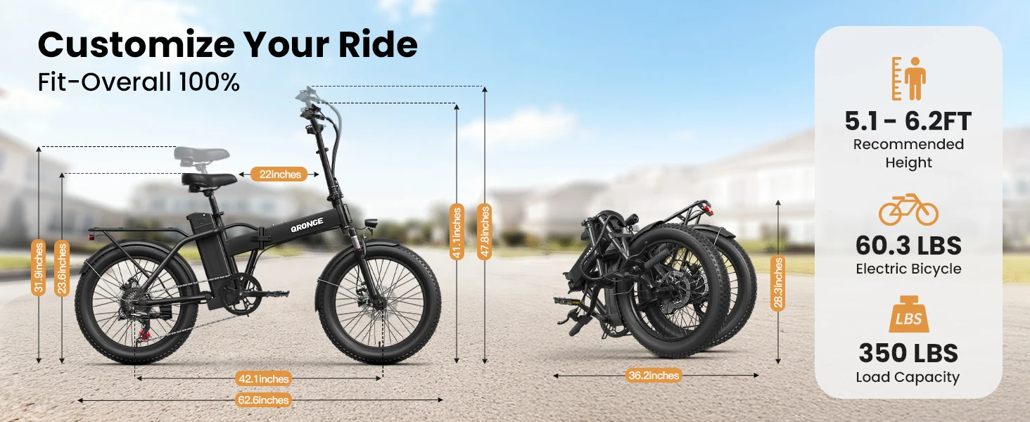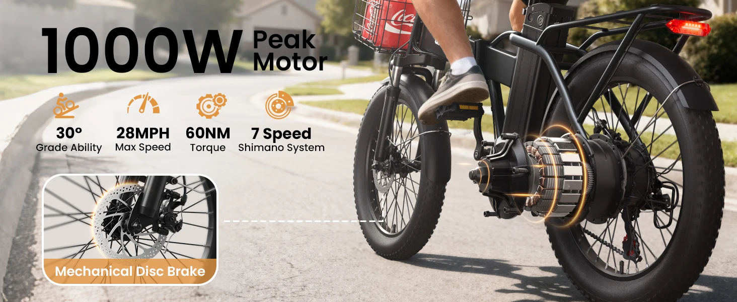 【Electric Folding Bike for Adults】Waterfall Ebike is powered by a 750W brushless motor (1000W peak), a highly efficient brushless motor that delivers 60NM of high torque power, with a top speed of 28MPH for comfortable and smooth acceleration.