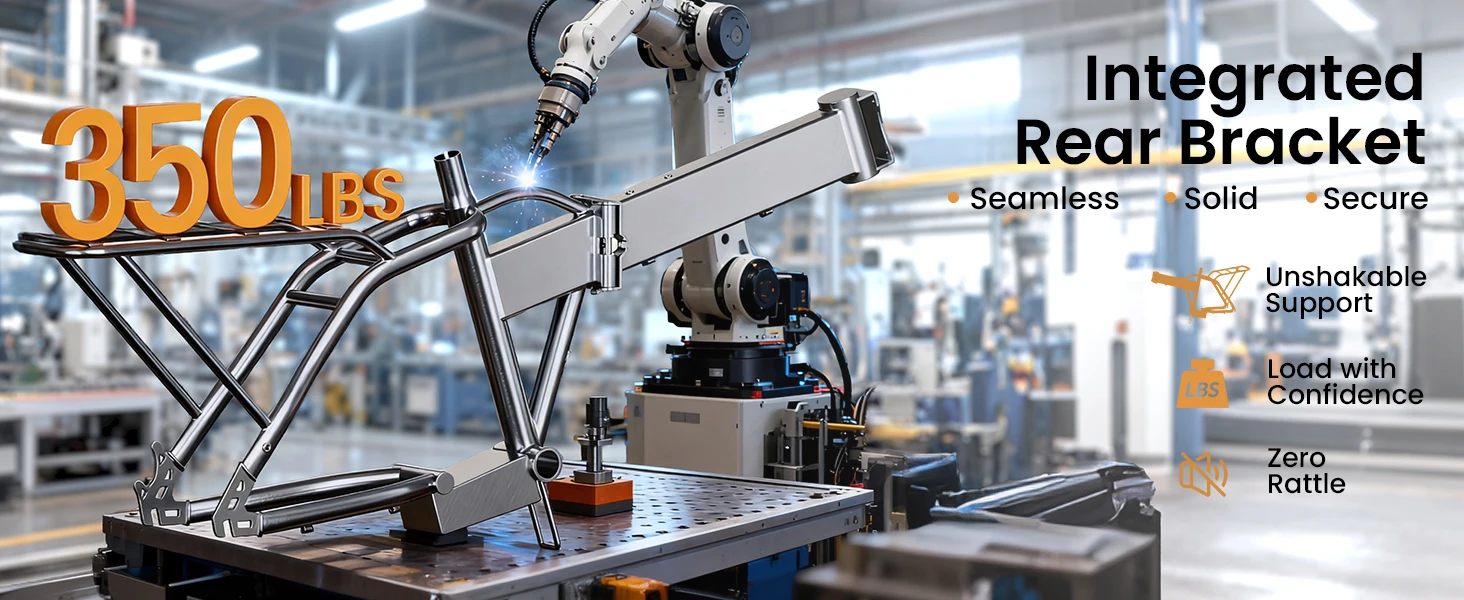 【Monocoque Frame & 20x3.0 Inch Tires】New monocoque frame. Molded as a single unit from the body to the rear seat bracket. Compared to other frames, this design delivers superior stability and durability. Paired with 20x3.0-inch tires suitable for diverse terrains like mountain trails and paved roads, it ensures a safe and stable riding experience.